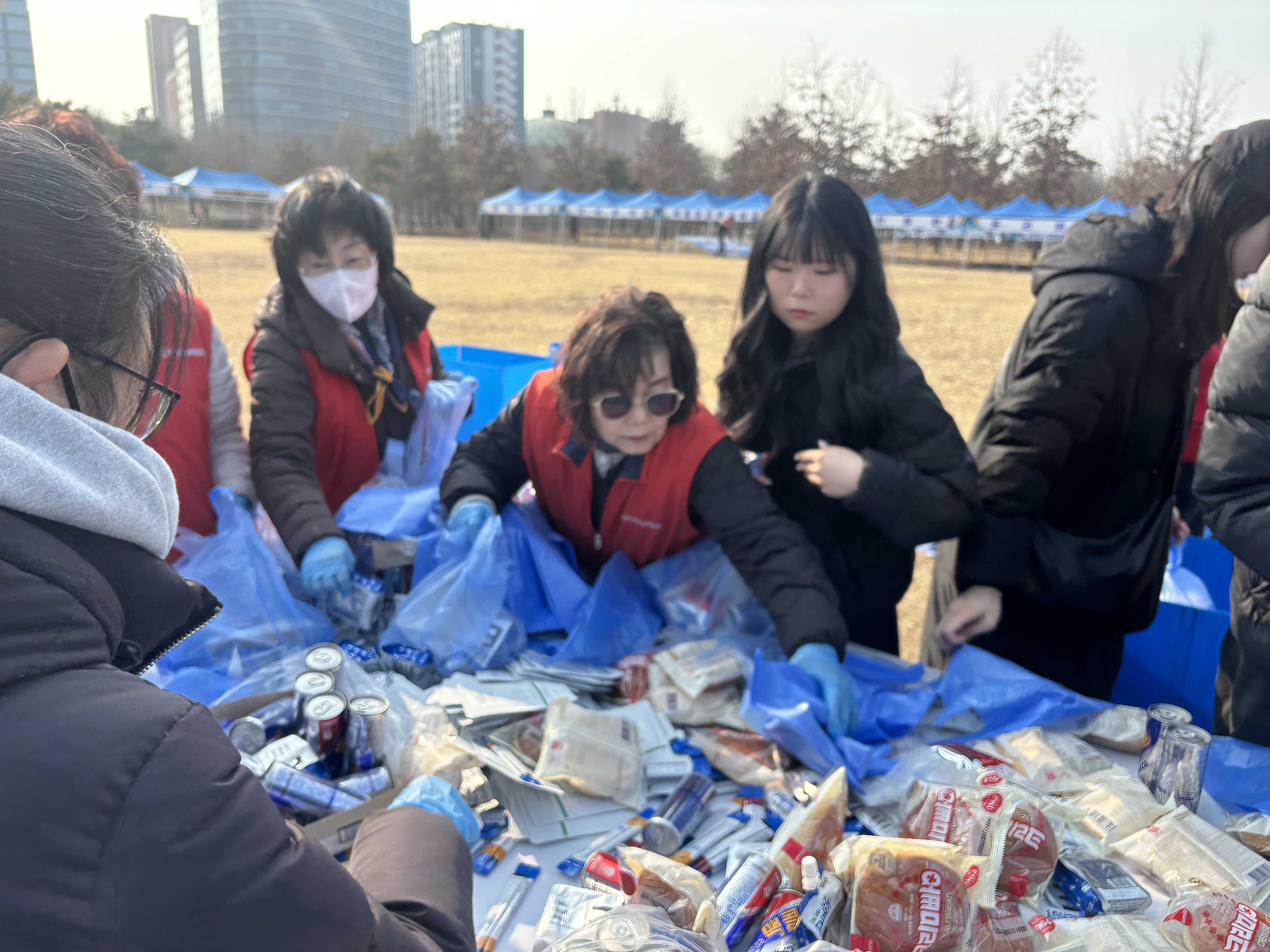 마라톤 참가자들에게 전달될 물품을 정리하며